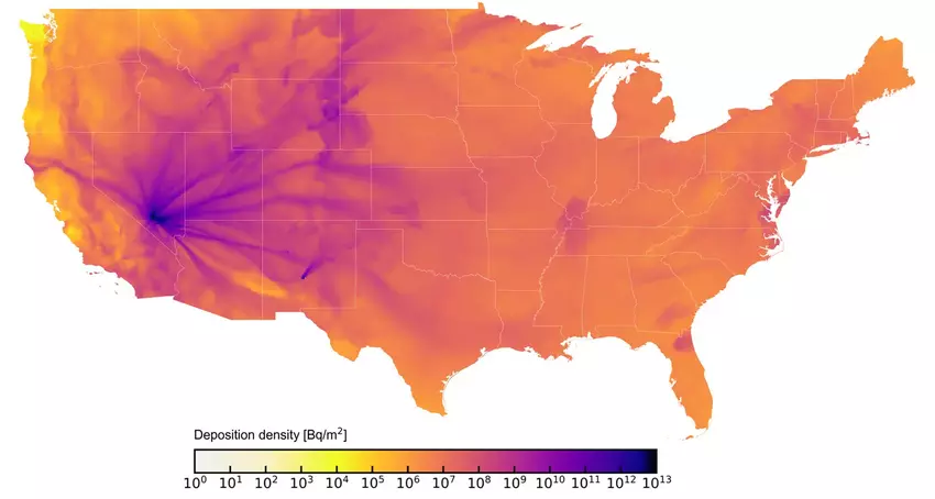 Darüber hinaus hat das Wissenschaftlerteam die Informationen über den radioaktiven Niederschlag für alle 93 oberirdischen Kernwaffentests in den USA, die im Bundesstaat Nevada stattfanden, erneut überprüft. Auf der Grundlage der gewonnenen Daten wurde eine Karte der Verteilung des radioaktiven Niederschlags erstellt. In Zukunft will das Forschungsteam die Daten für Kernwaffentests im Pazifischen Ozean untersuchen.