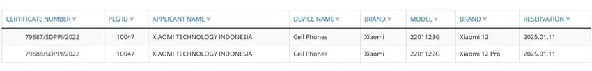 Die globalen Versionen der Modelle sind von der Indonesia Telecom Regulierungsbehörde zertifiziert. Xiaomi 12 und Xiaomi 12 Pro sind auf der Website der Regulierungsbehörde mit den Nummern 2201123G bzw. 2201122G zu sehen. Der G-Index zeigt an, dass wir es mit Flaggschiffen für den Weltmarkt zu tun haben.