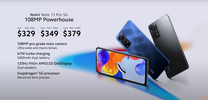 Redmi Note 11 Pro 5G – Snapdragon 695, 108-MP-Kamera, NFC, 120-Hz-AMOLED-Display, 67-W-Aufladung und MIUI 13 ab 329 US-Dollar