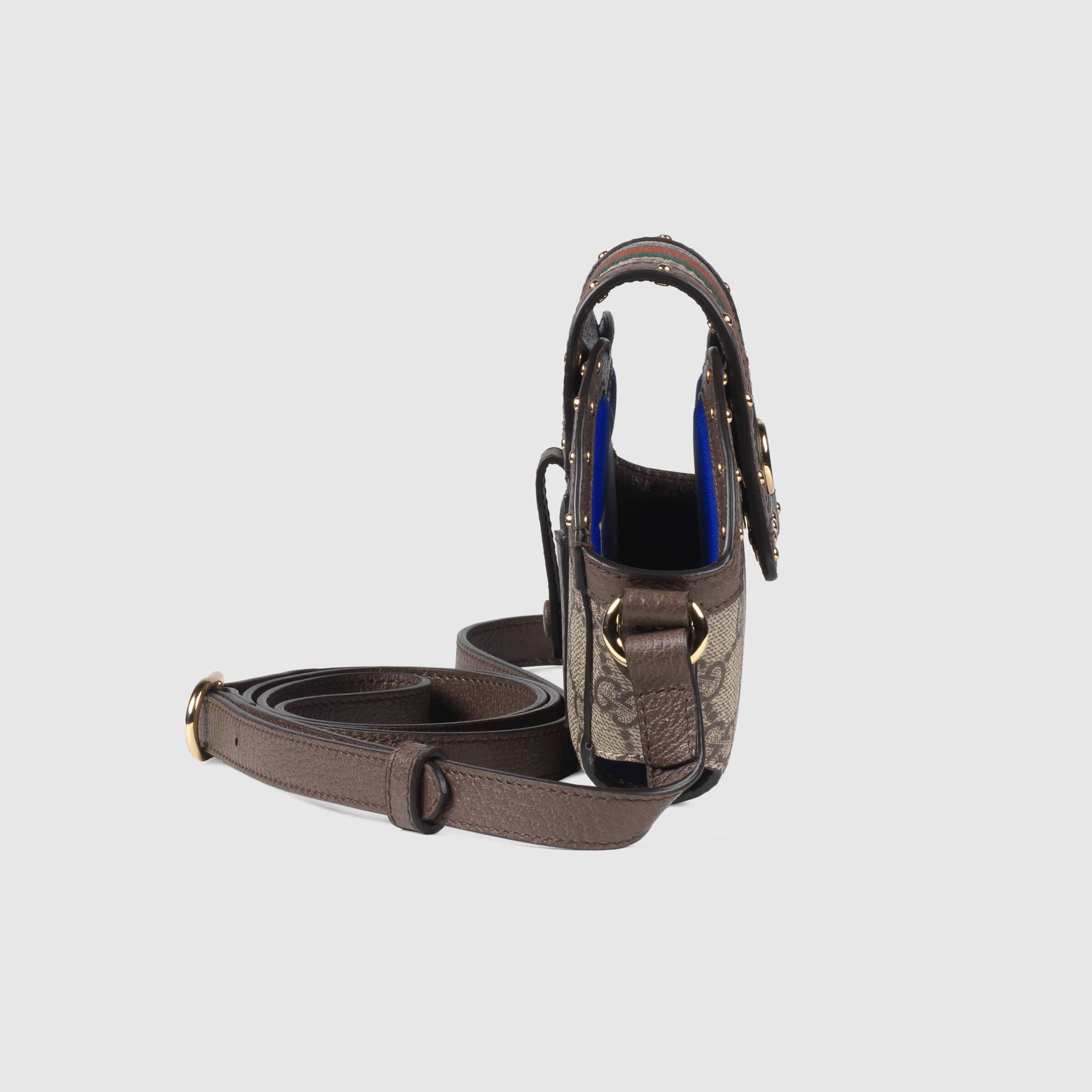 Der Koffer ist Teil der Ophidia-Taschenlinie, die bereits 2018 auf den Markt kam. Die Neuheit verbindet Vintage und modernen Stil. Hergestellt aus GG Supreme-Canvas, das zu 100 % recycelbar ist. Er erhielt auch Beilagen braunes Leder u Futter aus Neopren und Viskose.