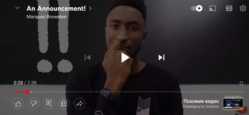Der Player ist funktionaler geworden. Beispielsweise können Benutzer jetzt ein Video mögen/nicht mögen, ohne den Vollbildmodus zu verlassen. Außerdem erhielt die aktualisierte Version die Schaltflächen „Teilen“ und „Zu Favoriten hinzufügen“. Außerdem erschien in der linken Ecke ein „Stapel“ mit ähnlichen Videos.