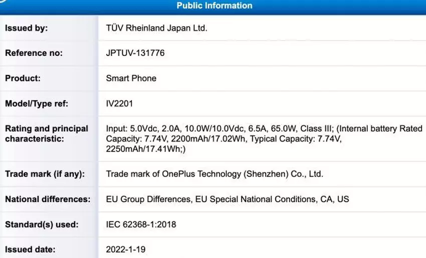 Im Netz tauchen weiterhin Details zum Smartphone OnePlus Nord CE 2. Diesmal wurde das Gerät in der Datenbank vermerkt TÜV Rheinland.