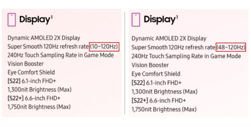 Kein Grund angegeben: Samsung hat stillschweigend die Informationen zur Aktualisierungsrate von Galaxy S22 und S22+ geändert