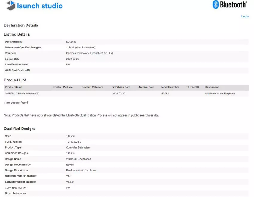 OnePlus Bullets Wireless Z2 in Datenbank entdeckt Bluetooth-SIG. Kopfhörer werden mit der Modellnummer E305A geliefert. Leider gibt es in den Unterlagen keine Spezifikationen und ein Ankündigungsdatum für das neue Produkt, aber laut einem indischen Insider könnten die Kopfhörer im März oder April angekündigt werden.
