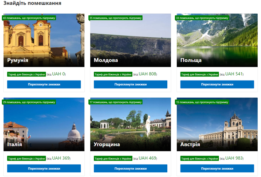Der Tarif gilt in der Slowakei, Ungarn, Rumänien, Polen, Moldawien, Tschechien, Italien, Deutschland, den Niederlanden und Österreich. Gleichzeitig ist es notwendig, die Unterkunft nicht früher als drei Tage vor dem Check-in zu buchen. Derzeit können Sie beispielsweise in Rumänien und der Slowakei kostenlos eine Wohnung mieten, und in Italien beginnt der Preis bei 369 UAH.