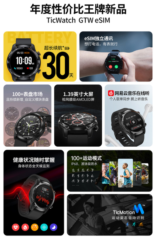TicWatch GTW eSIM hat bereits mit dem Verkauf begonnen, bisher jedoch nur in China. Sie verlangen 150 Dollar für eine Neuheit.