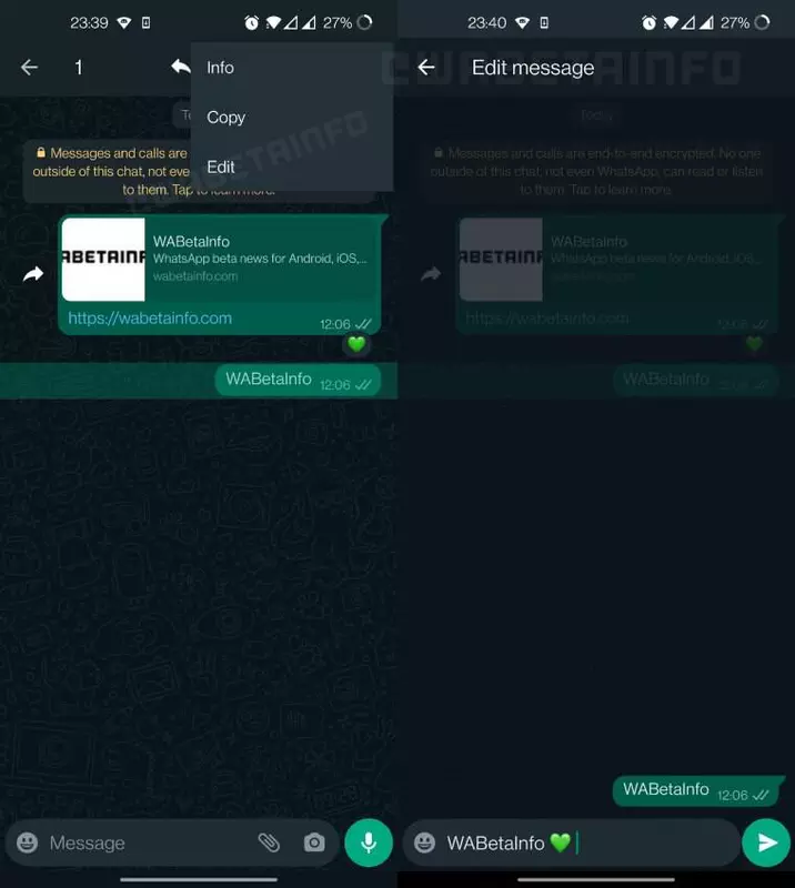 Wir sprechen über die Möglichkeit, Nachrichten zu bearbeiten, wie in Telegram und anderen Instant Messengern. Dies wurde von den Handwerkern aus dem Portal erzählt WABetaInfo. Es gelang ihnen, einen Test-Build der App zu bekommen, der eine Schaltfläche „Beitrag bearbeiten“ hatte.