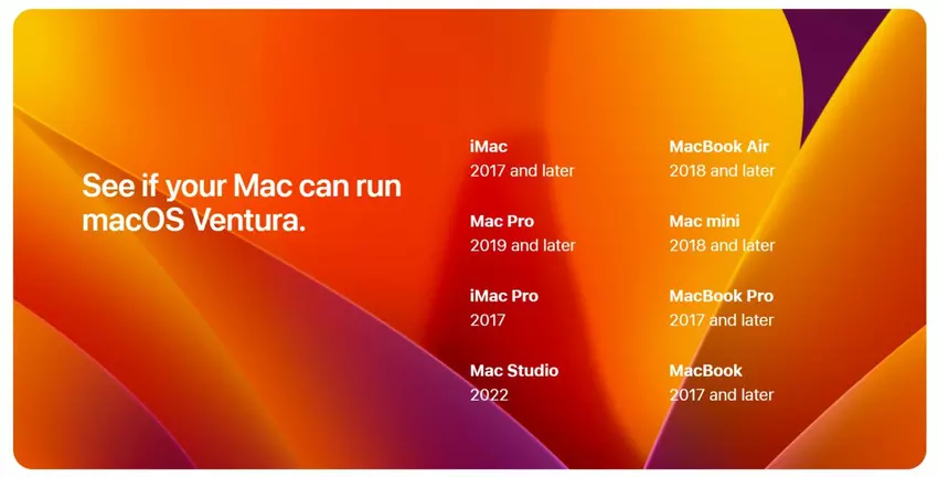 macOS Ventura funktioniert auf Intel- und Apple M-betriebenen Desktop- und Laptop-Computern, beginnend mit 2017-Modellen von MacBook (Pro) und iMac (Pro).
