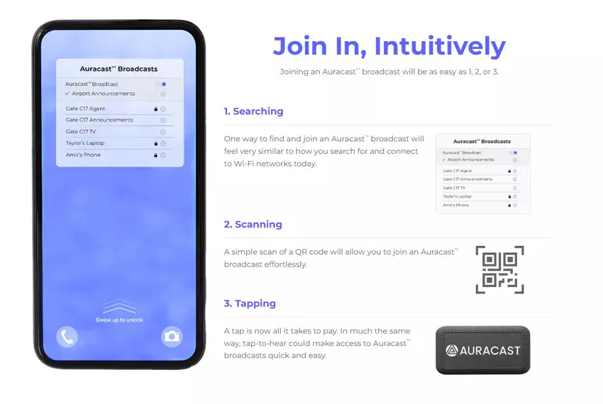 Einfach gesagt, ein Bluetooth-Gerät wird in der Lage sein, seine Fähigkeiten zum Streamen von Audio anzukündigen, und andere Geräte erhalten Anweisungen, wie sie an der Auracast-Übertragung teilnehmen können. Laut Bluetooth SIG wird die Benutzeroberfläche der von öffentlichen Wi-Fi-Netzwerken ähneln, wobei die Übertragung auf bestimmte Geräte mit dem richtigen Passkey beschränkt werden kann. Mit Audio-Streaming können Sie beispielsweise an einem öffentlichen Ort eine Verbindung zu einem Fernseher herstellen, eine Präsentation mit vielen Personen teilen oder im Fitnessstudio eine von mehreren Musik-Playlists anhören, indem Sie einfach darauf zugreifen. Darüber hinaus wird die Audioqualität für diejenigen verbessert, die Hörgeräte benötigen.