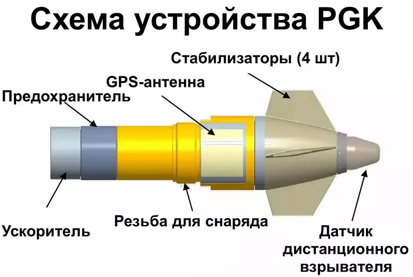 • Eigene "russische Version" PGK mit einem GLONASS-Navigationsmodul für 152-mm-Granaten aufgetreten Moskauer Designbüro "Compass" im Jahr 2011. Glücklicherweise ist dieses Designbüro seit fast 5 Jahren aufgelöst.