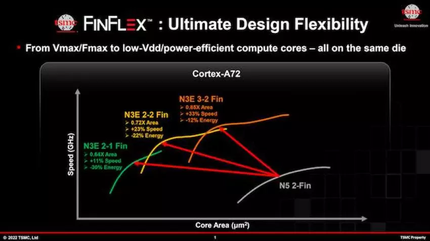 Außerdem führte TSMC GAAFETs (Gate-All-Around-Feldeffekttransistoren) ein. Die neuen Nanoblatt-Transistoren erhöhen die Leistung pro Watt, indem sie den Widerstand verringern.
