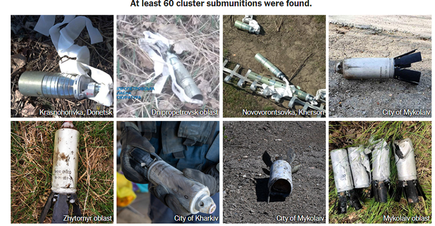 Im Artikel Die New York Times Metallnagelmunition und Phosphormunition werden erwähnt. Die Autoren des Materials glauben, dass die größte Gefahr für die Zivilbevölkerung Blindgänger sind, die jahrzehntelang im Boden bleiben können.