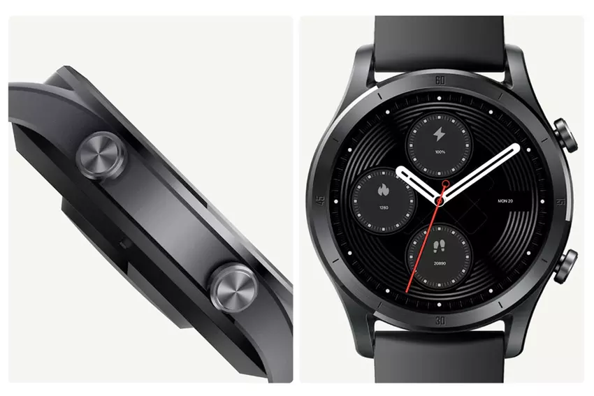 Das Gadget hieß TechLife Watch R100. Die Uhr wurde rund 1,32 Zoll Auflösungsanzeige 360x360p, 450 Nits Helligkeit und ein IP68-zertifiziertes Gehäuse. Das Gadget unterstützt mehr als 100 Zifferblätter und Anrufe. Mit der Uhr können Sie Ihr Training und Ihren Schlaf verfolgen. HAces kann Herzfrequenz, Stress und Sauerstoffgehalt im Blut überwachen.