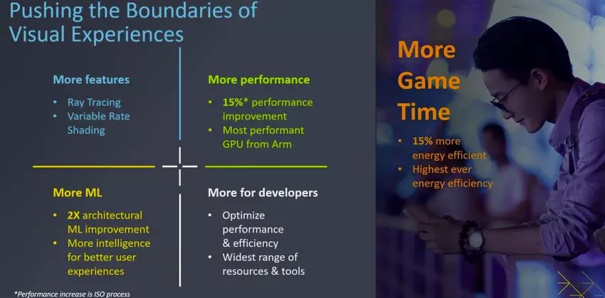 ARM stellte die neueste mobile Flaggschiff-GPU vor, die hardwarebasiertes Raytracing bieten wird, eine Premiere für das Unternehmen. Die Immortalis-G715 verspricht eine 15-prozentige Leistungssteigerung im Vergleich zur vorherigen Generation von Premium-Mali-GPUs des Unternehmens. Die Leistungssteigerung ist auf architektonische Verbesserungen und ein Design zurückzuführen, das bis zu 16 Kerne aufnehmen kann.