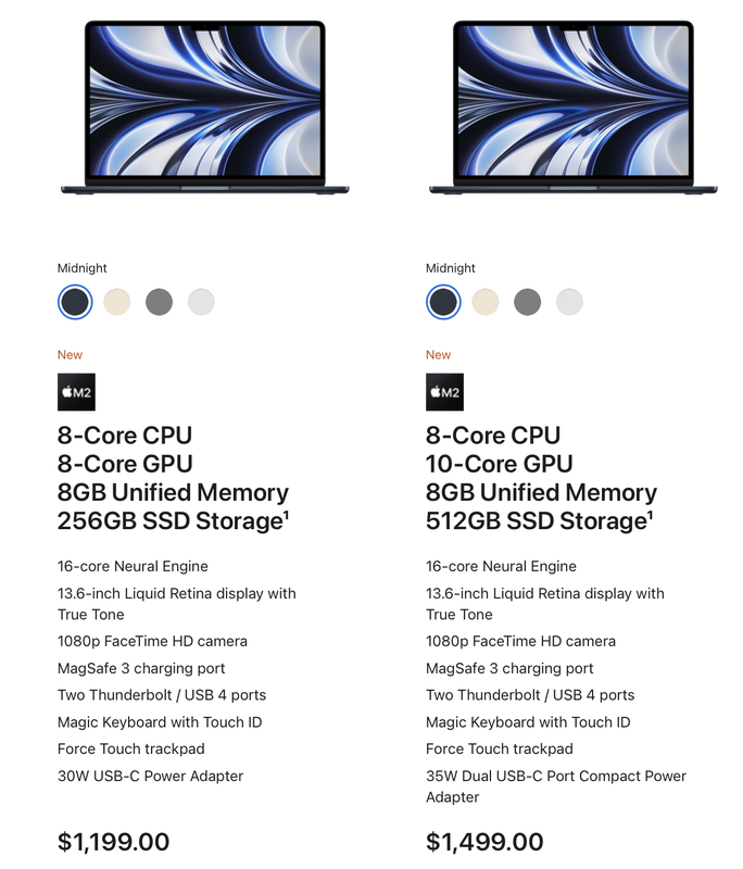 Recall, das neue MacBook Air verfügt über ein aktualisiertes Design im Stil des MacBook Pro. Das Gerät ist mit einem M2-Prozessor, magnetischer MagSafe-Ladetechnik sowie verbesserten Lautsprechern, Display und Webcam ausgestattet.