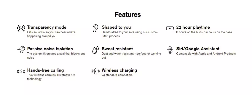Die UE Drops sind kabellose, tragbare Lautsprecher, die mit einer einzigen Ladung neun Stunden Wiedergabezeit bieten. Sie verfügen über 9,2-Millimeter-Treiber, bis zu acht Stunden Spielzeit mit der passenden Ladehülle, die zusätzliche 14 Stunden ohne Stromzufuhr ermöglicht, und eine mobile App für EQ-Anpassungen. Die UE Drops verfügen über keine aktive Geräuschunterdrückung; sie enthalten nicht einmal ein Paar Silikonaufsätze. Im Vergleich zu kabellosen Ohrstöpseln, die nur Silikonaufsätze verwenden, sollte die passive Geräuschunterdrückung der UE Drops deutlich besser sein. Wenn man jedoch bedenkt, dass man eine hervorragende ANC-Leistung von einem 99 $ teuren Set kabelloser Ohrstöpsel erhalten kann, erscheint der Preis der UE Drops von 449 $ noch extremer, wenn man ihn mit dem eines professionellen Sets von In-Ear-Monitoren vergleicht.