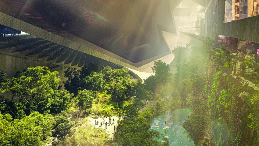 Die Schöpfer der Linie stellen sich eine Stadt vor, in der alle Einrichtungen innerhalb von fünf Minuten zu Fuß erreichbar sind und in der sich die Menschen bei der Erledigung ihrer täglichen Geschäfte begegnen können. Sie wird zwar keine Straßen enthalten und auch keine Autos aufnehmen können, aber sie wird über eine Hochgeschwindigkeitsstrecke verfügen, die eine durchgehende Verbindung herstellt und für eine durchgehende Fahrt 20 Minuten benötigt. Außerdem wird ein natürliches Belüftungssystem zum Einsatz kommen, das den Bewohnern das ganze Jahr über ein optimales Klima garantiert.