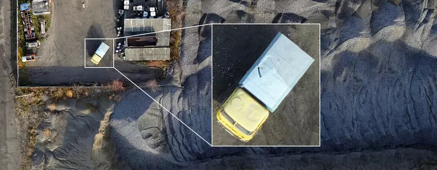 Die 61-MP-Kamera Sony Alpha A7 Mark 4 bietet eine Auflösung von 1 cm pro Pixel aus 100 Metern Entfernung, so dass Sie einzelne Blätter und kleine Steine auf der Straße erkennen können.