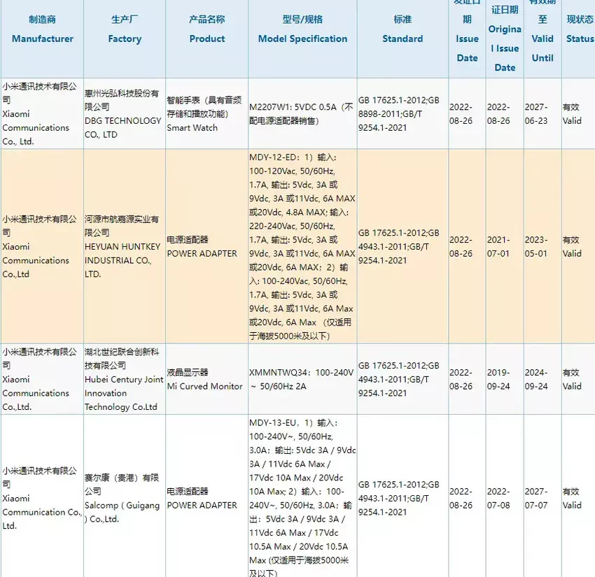 Xiaomi hat zum Beispiel das Ladegerät MDY-13-EU mit 210W zertifiziert. Leider haben wir nur die Zertifizierung - keine Informationen darüber, wie schnell ein solches Ladegerät den Akku auflädt, welches Smartphone es zuerst bekommen wird und wann es auf den Markt kommt.