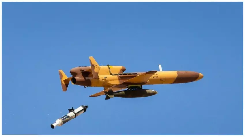 Der Iran führte auch ein unbemanntes Luftfahrzeug Kaman-12 vor, das mit gelenkten Ghaem-Luftbomben ausgestattet ist.