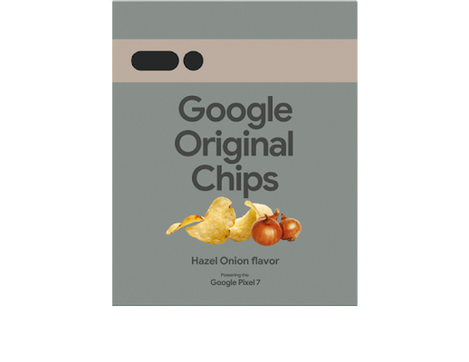 Bemerkenswert ist auch das Wortspiel: Die Aufschrift auf der Verpackung lautet "Google Original Chips", was mit "Original Google Chips" oder "Original Google Chips" (mit einem Hauch von Tensor) übersetzt werden kann.