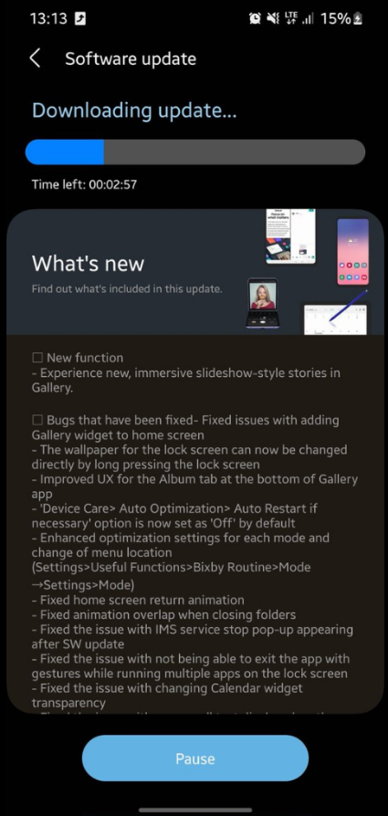 Was die Liste der Änderungen betrifft, so haben die Entwickler in erster Linie an Fehlern gearbeitet: verbesserte Anzeige, Animation, Starten von Anwendungen und mehr. Auch in der Firmware neu gestaltete Bildschirm, um das Hintergrundbild und die Geschichte in der Galerie als Diashow zu wählen.