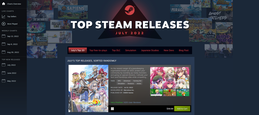 Laut Valve: Seit mehr als einem Jahr stellen sie Listen mit den besten Veröffentlichungen des Monats zusammen. Jetzt finden Sie diese an der gleichen Stelle wie die anderen Listen, so dass es noch einfacher wird, die Listen der vergangenen Monate einzusehen.