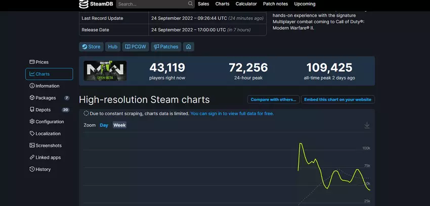 Steam-Server-Statistiken aufgezeichnet ein großes Interesse der Spieler, um das Spiel. Die Spitze Online-Beta Call of Duty: Modern Warfare II erreichte fast 110 Tausend Menschen. Zum Zeitpunkt des Schreibens der Nachricht gibt es mehr als 43.000 Spieler in das Spiel.