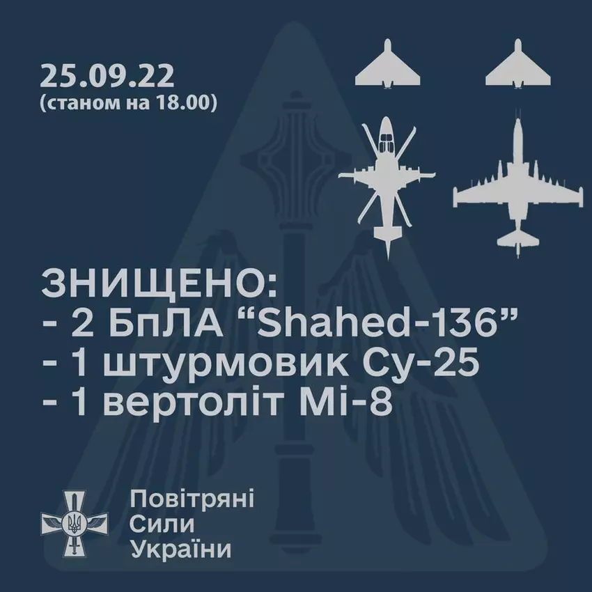 Die AFU zerstörte zwei Shahed-136-Drohnen, einen Mi-8-Hubschrauber und ein Su-25-Kampfflugzeug, das zu Hilfe kam.