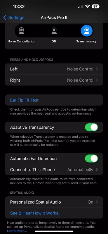 Reddit-Nutzer bemerkten die Adaptive Transparency-Einstellung für die AirPods Pro der ersten Generation im iOS 16.1 Beta-Update. Die Kopfhörer hatten auch eine Beta-Version der Software (5A304A). Es sieht so aus, als ob Apple die Technologie jetzt testet und sie in den originalen AirPods Pro mit der Veröffentlichung einer stabilen Version von iOS 16.1 erscheinen wird.