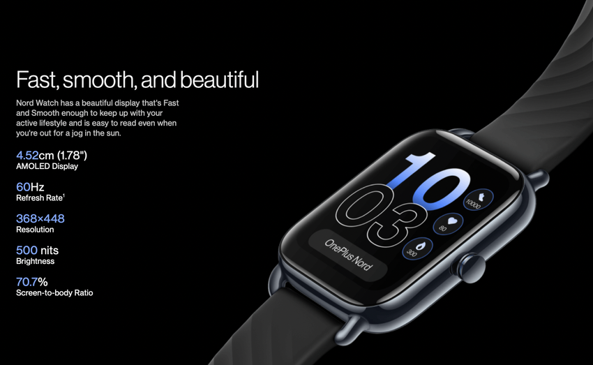 OnePlus Nord Watch: 1,78" OLED-Display, GPS, SpO2-Sensor, IP68-Schutz und bis zu 30 Tage Akkulaufzeit für $85
