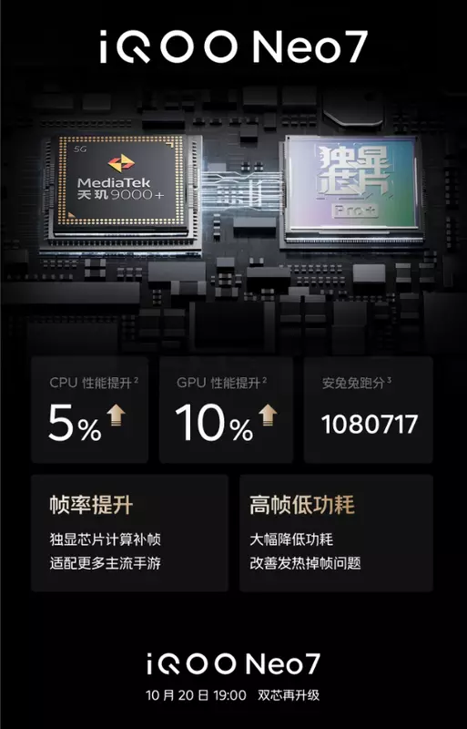 Das neue Produkt wird den Namen iQOO Neo 7 tragen. Laut der offiziellen Einladung des Unternehmens wird das Smartphone am 20. Oktober in China vorgestellt werden. Das heißt, eine Woche später.