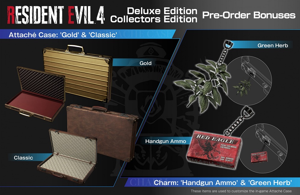 • Für die Standard-Edition von Resident Evil 4: einen goldenen Koffer und einen "Gun Ammo"-Schlüsselanhänger;