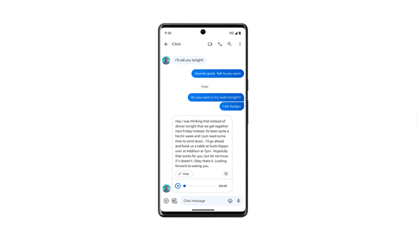 Zu den Neuerungen gehören auch die Unterstützung von Picture in Picture (PiP aka Picture in Picture) für YouTube, die Möglichkeit, im Chat Erinnerungen zu setzen und Ereignisse zu planen, sowie die Übersetzung von Sprachnachrichten in Text. Die letztgenannte Funktion wird ausschließlich auf den Smartphones Pixel 7 und Pixel 7 Pro funktionieren.