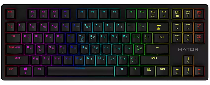 Die Tastatur basiert auf einer Metallplatte, was die Steifigkeit erhöht. Die optischen Schalter werden in nur 0,2 ms betätigt, da ein Tastendruck nicht nach dem Schließen eines elektrischen Kontakts, sondern nach der Unterbrechung eines Lichtstrahls gelesen wird. Die Standardeinstellungen sind Kailh-Mikroschalter mit einer Lebensdauer von bis zu 80 Millionen Klicks. Wenn Sie möchten, können Sie sie durch andere mit der gleichen Pinbelegung ersetzen. Das ukrainische Alphabet ist eingraviert. Das Paket enthält auch austauschbare Tastenkappen für die am häufigsten in Spielen verwendeten Tasten aus nicht löschbarem PBT-Kunststoff.