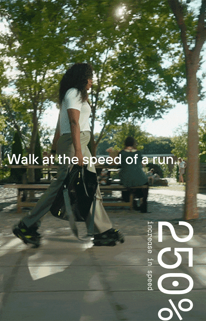 Jedes Gerät verfügt über einen 300-Watt-Elektromotor, der einen Satz von acht Polyurethanrädern antreibt. Sensoren erfassen den Gang des Benutzers, während Algorithmen die Leistung der Motoren automatisch an die Synchronisation zwischen den einzelnen Füßen anpassen, so dass die zusätzliche Geschwindigkeit je nach Gangart des Trägers zunimmt oder abnimmt - schneller oder langsamer.