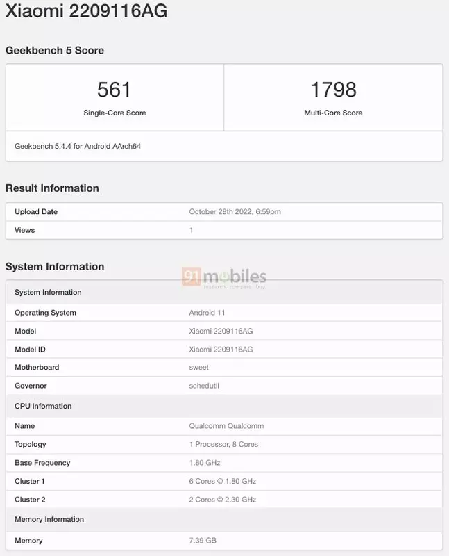 In der Datenbank der Software Geekbench 5 erschien ein neues noch unangekündigtes Smartphone Xiaomi - Redmi Note 11 (2023).