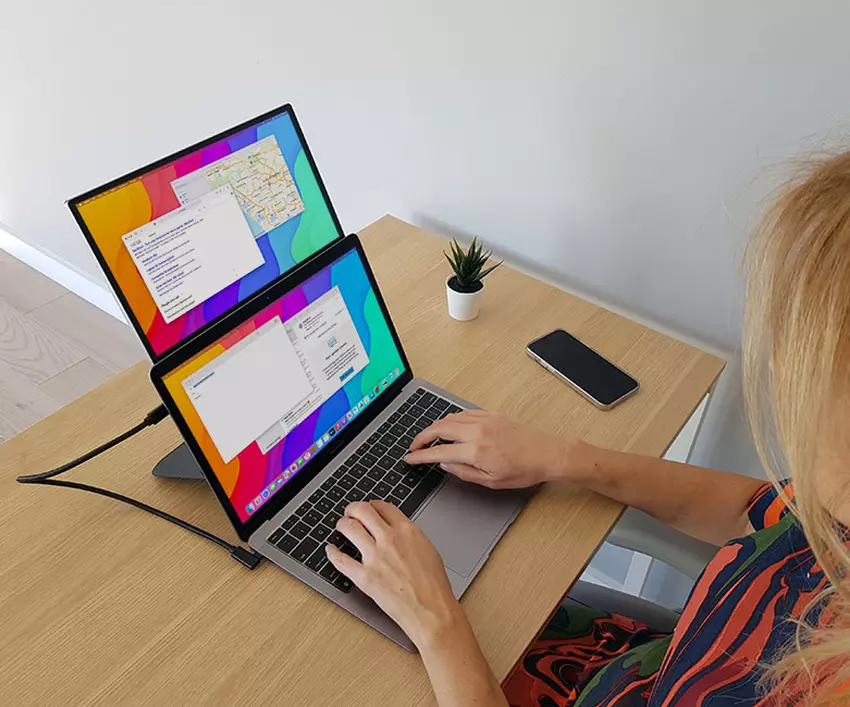 Das Hauptmerkmal des NexPad ist, dass es Ihr Android-Smartphone in ein Tablet verwandeln kann. Es wird über einen USB-Typ-C-Anschluss angeschlossen, und das Smartphone selbst wird magnetisch an der Unterseite des Geräts befestigt. Es kann als Touchpad oder als zusätzlicher Bildschirm verwendet werden.