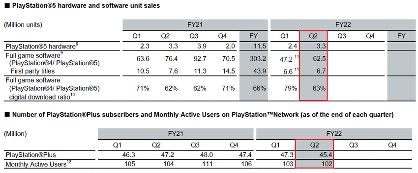 Allerdings ist es dem Hersteller nicht gelungen, die Zahl der PS Plus-Abonnenten zu steigern. Im Berichtszeitraum wurde der Dienst von 45,4 Millionen Nutzern in Anspruch genommen, verglichen mit 47,2 Millionen im letzten Jahr und 47,3 Millionen im vorangegangenen Quartal. Darüber hinaus sank die Zahl der aktiven PSN-Spieler im Jahresverlauf von 104 Millionen auf 102 Millionen. Von Sony-Spielen wurden 6,7 Millionen Exemplare verkauft, während der Gesamtabsatz von Software 62,5 Millionen Exemplare erreichte.