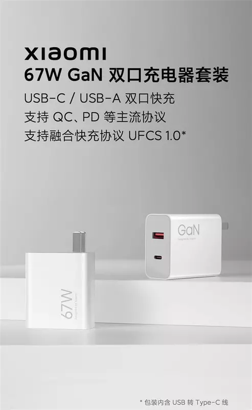 Xiaomi hat ein 67-Watt-GaN-Ladegerät mit zwei USB-Anschlüssen und UFCS 1.0-Protokollunterstützung vorgestellt