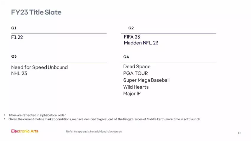 Dem Bericht zufolge plant Electronic Arts die Veröffentlichung von sechs großen Projekten bis zum Ende des Geschäftsjahrs.