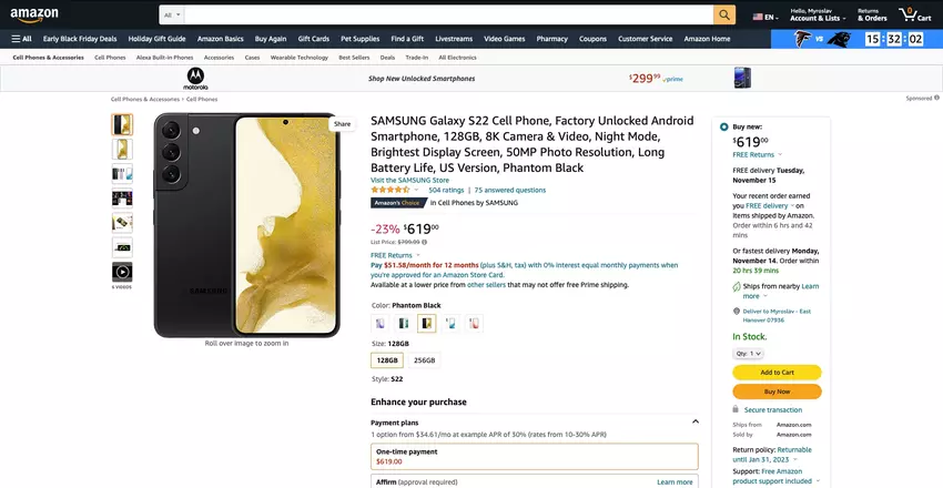 Aktuelles Flaggschiff-Smartphone Samsung Galaxy S22 auf Amazon mit einem Rabatt von $181 zu verkaufen