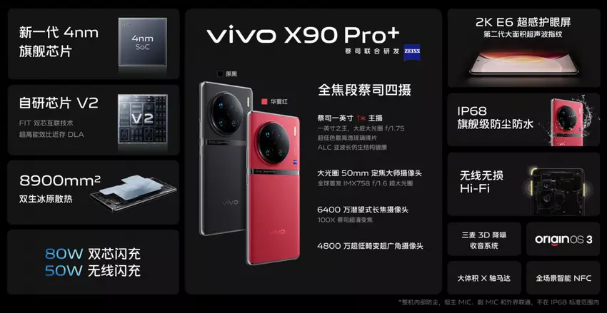 Das Unternehmen vivo hat das weltweit erste Smartphone vorgestellt, das mit einem Qualcomm Snapdragon 8 Gen2 Prozessor ausgestattet ist. Die Neuheit wird vivo X90 Pro+ genannt.