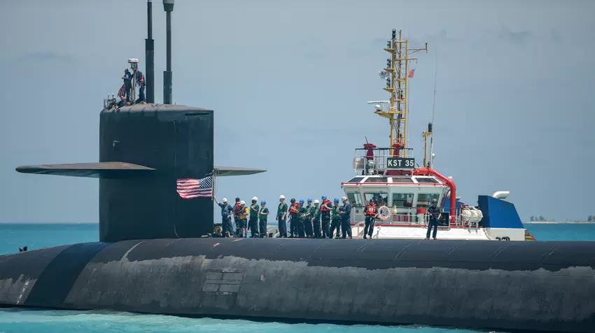 Die USA haben das Atom-U-Boot USS West Virginia, das 20 ballistische Trident II D5-Raketen mit Atomsprengköpfen tragen kann, auf die Insel Diego Garcia im Indischen Ozean entsandt.