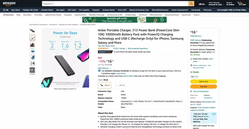 Anker verkauft jetzt eine kompakte Batterie mit einem Rabatt auf Amazon.