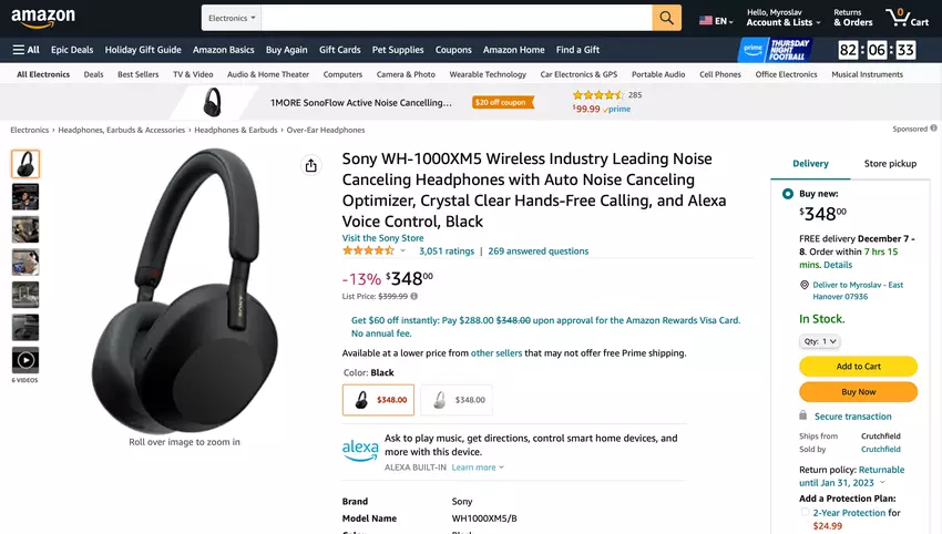 Einer der besten kabellosen Kopfhörer mit ANC: Sony WH-1000XM5 auf Verkauf auf Amazon für $51 off