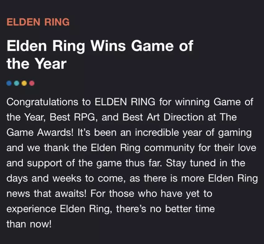Im Resetera-Forum hat ein User einen Screenshot aus dem Newsletter von Bandai Namco und FromSoftware gepostet, der besagt, dass die Spieler in den kommenden Tagen und Wochen einige Neuigkeiten über Elden Ring erwarten können. Und da schon seit einigen Monaten von einer Story-Erweiterung des Spiels die Rede ist, ist es wahrscheinlich, dass die Entwickler diese ankündigen werden. Aber natürlich können wir auch kleinere Updates nicht ausschließen.