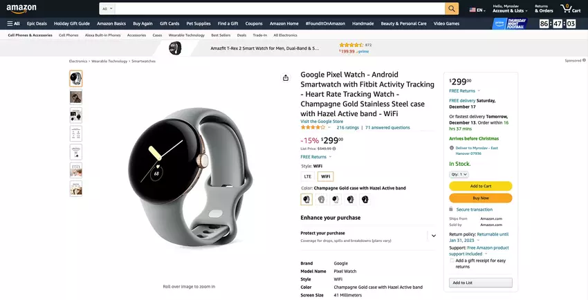 Google Pixel Watch ist auf Verkauf auf Amazon für $ 50 ab