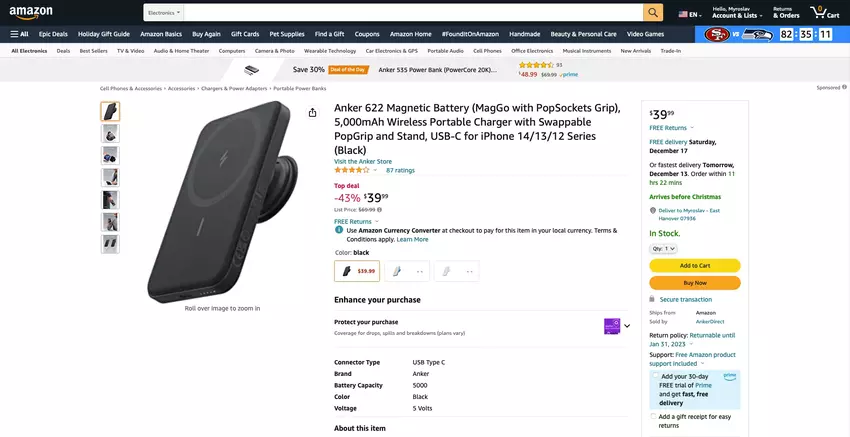 Es handelt sich um die Anker 622 Magnetic Battery mit MagSafe-Unterstützung für check price on amazon. Das Gerät hat eine Kapazität von 5000 mAh und ist mit den Modellen iPhone 12, iPhone 13 und iPhone 14 kompatibel.