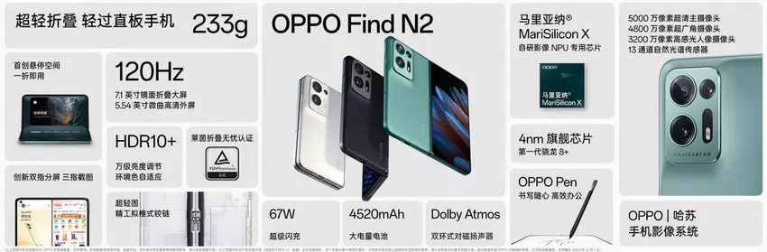 OPPO Find N2 - Snapdragon 8+ Gen 1, zwei 120Hz LTPO AMOLED Displays, Hasselblad Kamera, OPPO Pen Stylus Unterstützung und Android 13 zu einem Preis von $1145